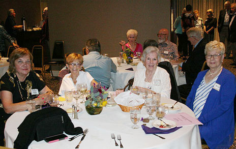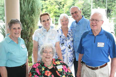 l to r: Gail Schroeder Dunning, Ella Krewson Fowerbaugh, (behind her) Ella's daughter), Patsy Gregg Hoag, Jack Hoag, John Dunning |