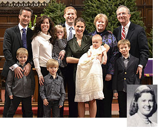 Don't have a good recent photo of Joe and myself, but this is the christening of our youngest grandchild. Our middle son is from California and didn't make it to the christening in Bronxville, NY. I'm sorry I won't make another reunion, but will be having a shoulder replacement in September. I wish everyone a wonderful reunion and happy reminiscences. (*posted 7/11/13) Email Bert.